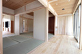 室内の壁は漆喰で仕上げ、その良さを生かすために天井や床も天然の無垢材を使用。奥様が選んだピンクの縁がアクセントとなった畳も天然素材のものこだわりました。